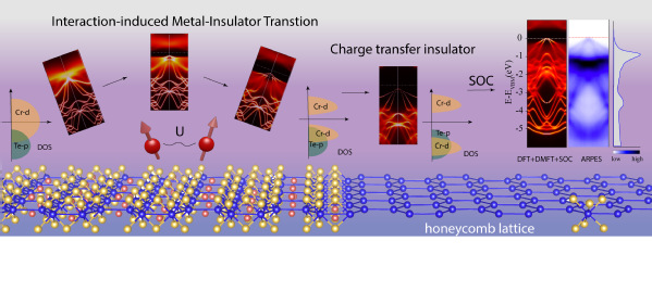As a result, CrSiTe3 satisfies both conditions necessary for the Mott transition. The researchers found that the metal-insulator phase transition occurs under electron correlation (as shown in the left panel of Figure 1), under which the d-electron band near the Fermi surface is split into upper and lower Hubbard bands with the latter being further pushed below the Te-p orbit. The Te-p orbit subjects to a strong spin-orbit coupling, such that when both the electronic correlation and the spin-orbit interaction are considered, the calculated electronic energy band highly resembles the electronic energy spectrum measured in the angular resolution photoelectron spectroscopy (see the right panel in Figure 1).