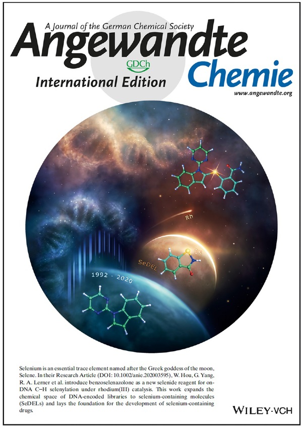 Recently, Angewandte Chemie International Edition published a collaborative study led by Professors Richard A. Lerner and Yang Guang from Shanghai Institute for Advanced Immunochemical Studies (SIAIS) of ShanghaiTech University, entitled “A Chemistry for Incorporation of Selenium into DNA-Encoded Libraries”. This paper has been highlighted as Very Important Paper (Top 5%) and selected as Cover Feature.