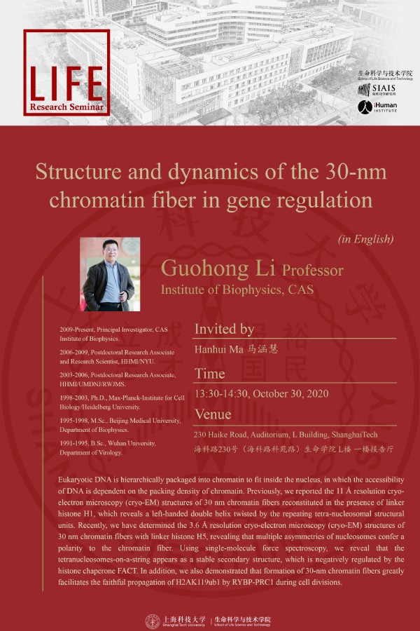 [SLST Seminar] Structure and dynamics of the 30-nm chromatin fiber in gene regulation