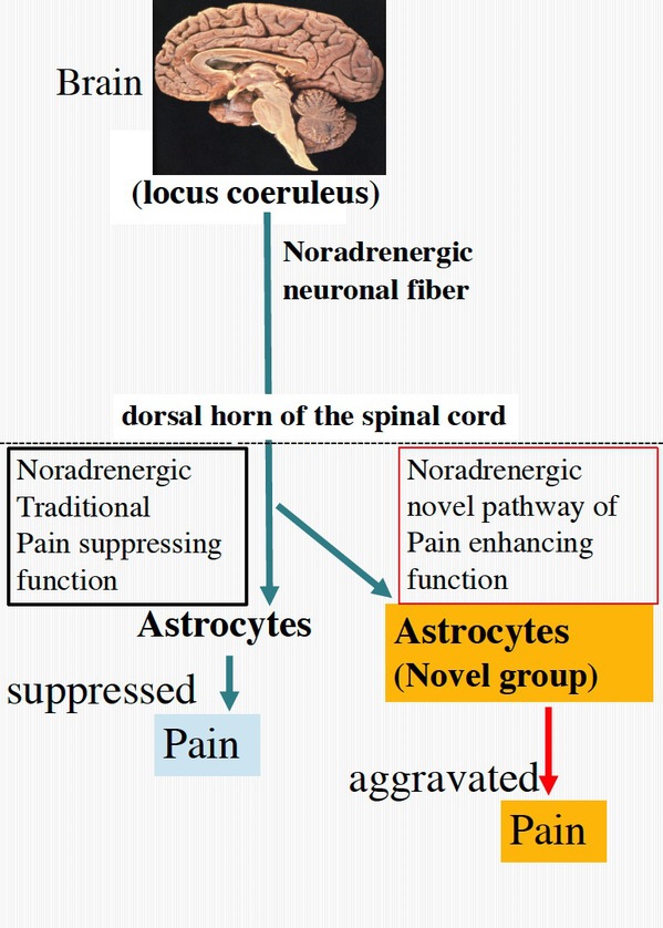 In this study the researchers identified a novel population of astrocytes located in the particular astrocytes group (at superficial laminae of the spinal dorsal horn (SDH)) in adults that is genetically defined by Hes5. SDH is the relay point of sensory signal to the brain. In vivo imaging revealed that noxious stimulation by intraplantar capsaicin injection activated SDH astrocytes via adrenoceptors through descending noradrenergic signaling from the locus coeruleus in the brain. Intrathecal noradrenaline induced mechanical pain hypersensitivity via adrenoreceptors in Hes5+ astrocytes, and chemogenetic stimulation of Hes5+ SDH astrocytes was sufficient to produce the hypersensitivity. Furthermore, capsaicin-induced mechanical hypersensitivity was prevented by the inhibition of noradrenergic signaling onto Hes5+ astrocytes. Moreover, in a model of chronic pain, adrenoreceptors in Hes5+ astrocytes were critical regulators for determining an analgesic effect of “duloxetine”. Mikoshiba and his collaborators’ findings identified a novel astrocyte population that gates descending noradrenergic control of mechanosensory behavior.