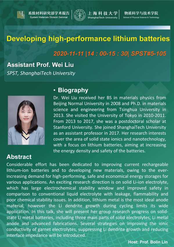 [SPST Talk] Developing High-Performance Lithium Batteries