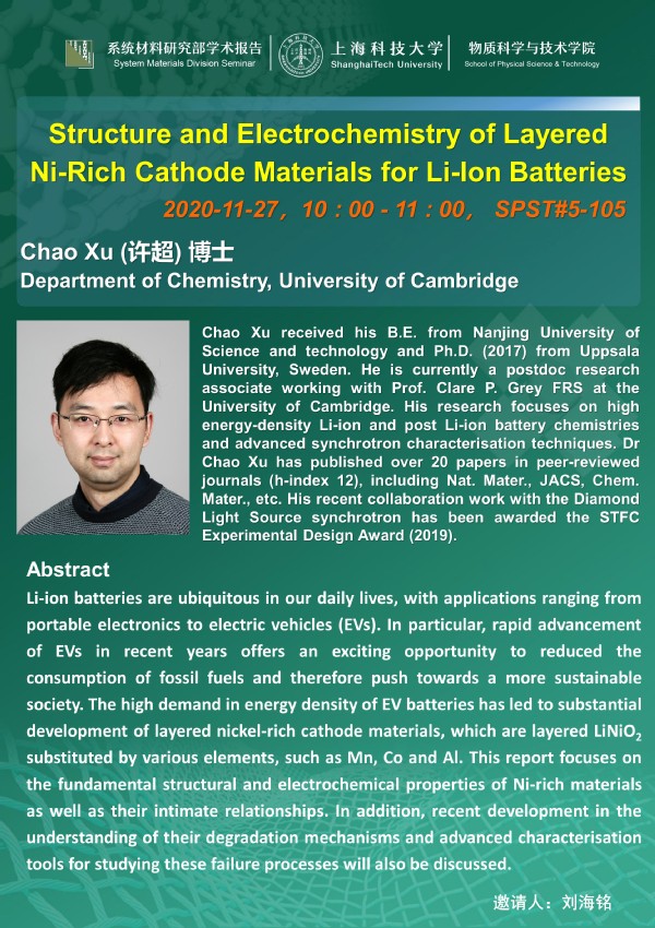 [SPST Seminar] Structure and Electrochemistry of Layered Ni-Rich Cathode Materials for Li-Ion Batteries