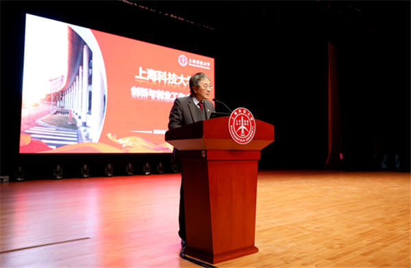 Executive Vice President and Provost Yin Jie introduced the innovation and entrepreneurship work of ShanghaiTech.