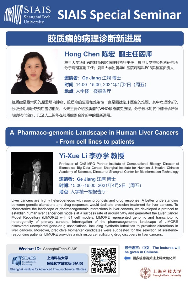 [SIAIS Seminar] New progress in pathological diagnosis of glioma; A Pharmaco-genomic landscape in human liver cancers