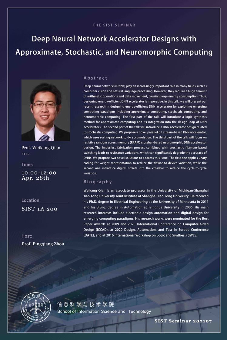[SIST Seminar] Deep neural network accelerator designs with approximate, stochastic, and neuromorphic computing