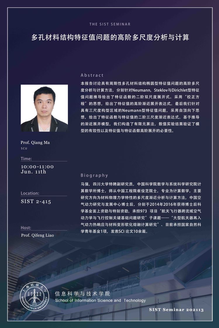 [SIST Seminar] High-order and multi-scale analysis and calculation of porous material structure eigenvalue problem