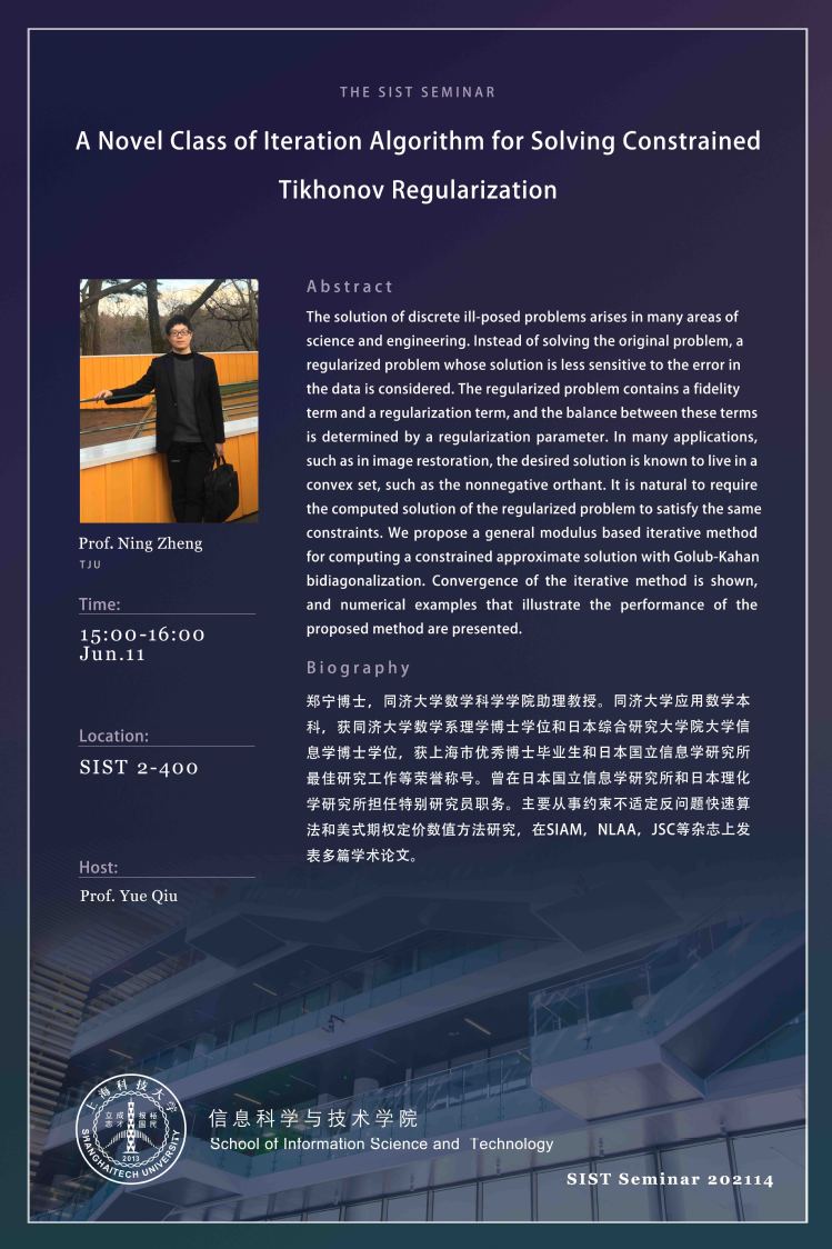 [SIST Seminar] A novel class of iteration algorithm for solving constrained Tikhonov regularization