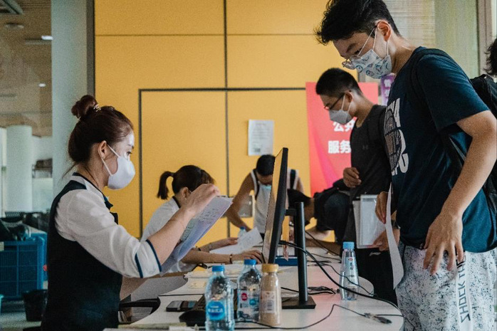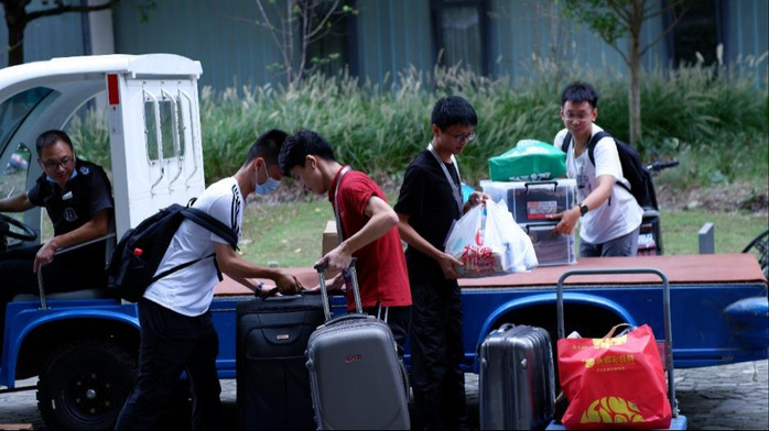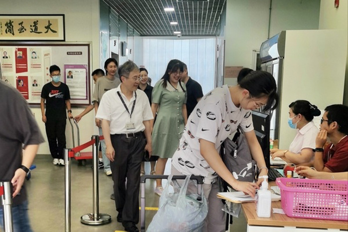 Due to the epidemic prevention and control regulations, parents of the new students were not allowed to enter the campus this year, so the university built some temporary shade sheds outside the school gate for them to rest. In addition, many warm-hearted seniors served as volunteers to guide the freshmen, introduce the campus, carry luggage, and answer questions.