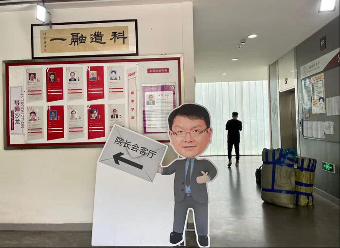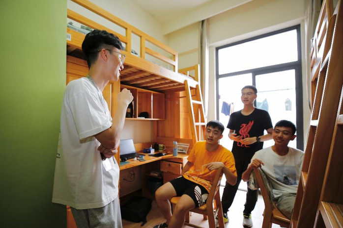 The Kedao College set up a dean's reception room, open to all 2021 new students of this college. Professor Yang Yang, Dean of Kedao College, talked with the freshmen face to face about their future outlook. There was also a roommate group photo wall located in the courtyard of Kedao College. Students could take the first beautiful picture with new roommates there.