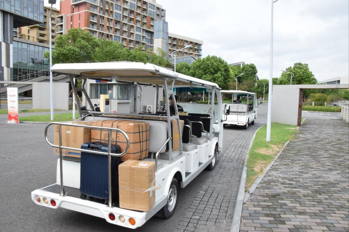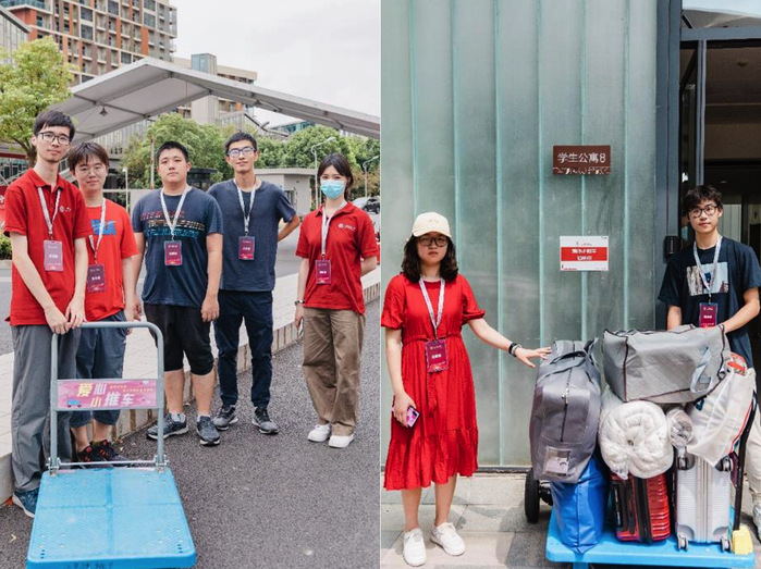 The Office of General Services provided several electric cars and carts to carry luggage for the students, and the volunteers organized by the Youth League Committee were ready to give a helping hand to the freshmen, as needed, in every corner of the campus, impressing freshmen with the warmth of home.