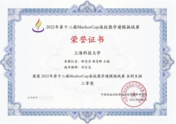 MathorCup is a national-level subject competition for college students. This year, the competition was very fierce which attracted 8,970 teams from 722 colleges and universities. To be outstanding among the participated teams, ShanghaiTech teams leverage the advantages of integration of disciplines, so as reflecting the management + technology training model and educating concept of SEM. In the future, SEM will continue to be student-oriented, and be committed to cultivating high-level comprehensive talents.