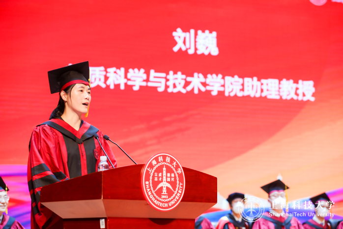 As a faculty representative, SPST Assistant Professor Liu Wei delivered her speech encouraging all the graduates to be optimistic. “I am a professor in materials science, so I hope all of you have the capability to be excellent materials with good mechanical properties so you can endure much tougher environments and pressures after graduation. I also hope you are made of stable material to keep you moving forward in the things you’re passionate about. Finally, I don’t wish you to be perfectly flawless. Materials with imperfections are the most balanced materials in our life.”