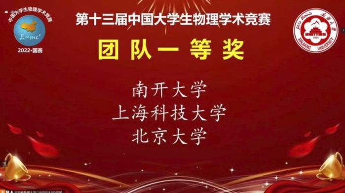 From October 3 to 6, the 13th China Undergraduate Physics Tournament (CUPT) was held online. ShanghaiTech team, consisting of 12 second-year undergraduates majoring physics, ranked ninth among 65 teams representing universities all over the country, and was awarded the First Prize, which was the best result since ShanghaiTech’s first participation in CUPT in 2019.