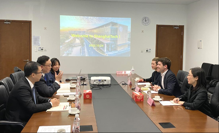 On October 24, 2022, Dr. Philippe Roesle, CEO and Consul of Swissnex in China, Switzerland’s Science Consulate in Shanghai, visited ShanghaiTech University. Vice President Jiang Ge held a meeting with him.