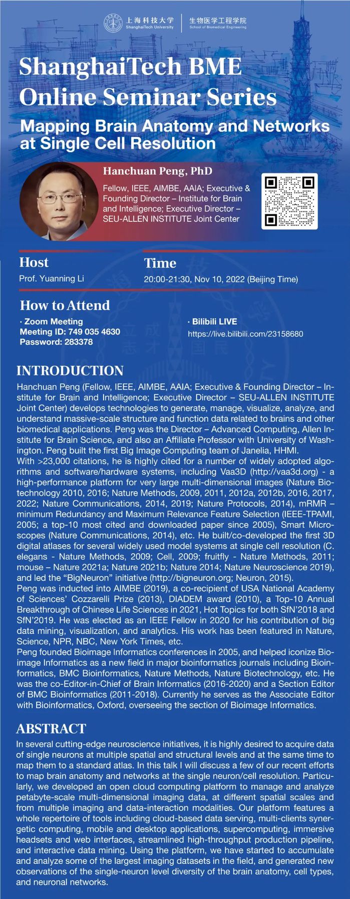 Speaker: Dr. PENG Hanchuan, Fellow, IEEE, AIMBE, AAIA; Executive & Founding Director, Institute for Brain and Intelligence (BrainTell), Southeast University (SEU); Executive Director, SEU - Allen Institute Joint Center