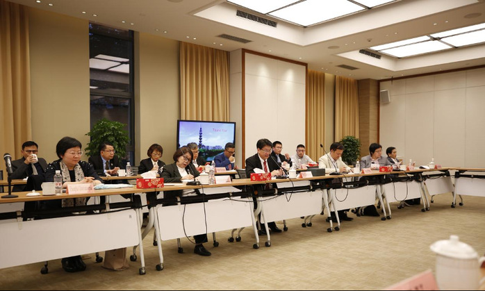 Afterwards, a meeting was held in the Conference Center. Jiang Ge gave an overall introduction of ShanghaiTech. Pasit Lorterapong expressed his appreciation for the hospitality of ShanghaiTech, and briefly described the history and organizational structure of MHESI. During the discussion, ShanghaiTech representatives shared how student-centered education, innovative culture, talented and motivated faculty and students contribute to the rapid development of the university. The MHESI delegation then introduced the Global Partnership Program, which aims at enhancing international cooperation and the integration of clinical research organizations to support clinical research in Thailand. Finally, both sides expressed their wish to build and promote future collaborations.