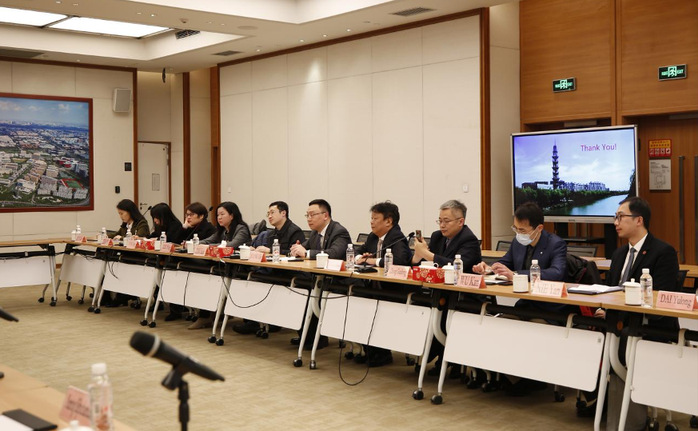 On February 12, a delegation from the Ministry of Higher Education, Science, Research and Innovation (MHESI) of Thailand visited ShanghaiTech University. Led by Prof. Pasit Lorterapong, Deputy Permanent Secretary of MHESI, a group of 13 Thai guests were warmly welcomed by Dr. Jiang Ge, Vice President of ShanghaiTech, as well as Prof. Jiang Biao, Distinguished Adjunct Professor of Shanghai Institute for Advanced Immunochemical Studies (SIAIS) and Director of Innovation Cooperation Center (Bangkok), Chinese Academy of Sciences (CAS), together with other representatives from SIAIS, iHuman Institute, School of Information Science and Technology (SIST), Office of Research and Office of International Affairs.