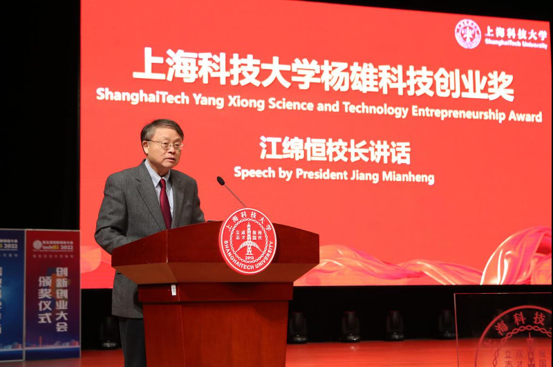 President Jiang Mianheng delivered a speech at the Yang Xiong Science and Technology Entrepreneurship Award Ceremony. He congratulated the three winners and reflected on the significant contributions of Yang Xiong (late Mayor of Shanghai and Chairman of the 2nd ShanghaiTech Governing Board) to the founding and development of the university. This Award is to commemorate Yang’s dedication to ShanghaiTech and follow in his footsteps by nurturing more promising innovators in the future.