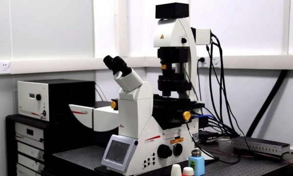 Photo of the Stimulated Emission Depletion (STED) super-resolution fluorescence microscope