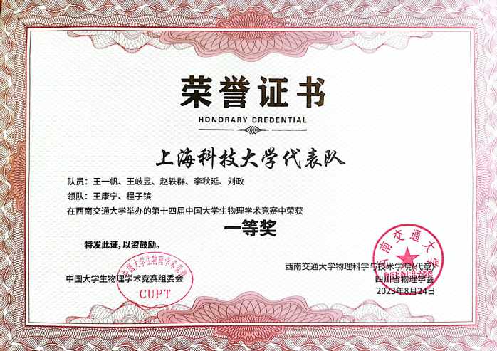 The 14th China Undergraduate Physics Tournament (CUPT) officially concluded on August 24. In this year’s competition, 64 teams competing from nearly 300 participating universities all around the nation entered the final stage. The ShanghaiTech team was awarded a First Prize and ranked overall sixth among all the teams. This was the best performance since ShanghaiTech’s first participation in CUPT in 2019, leading to a guaranteed participation offer in the 15th CUPT.