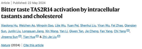 Recently, a team led by Professor Liu Zhi-Jie, Director of the iHuman Institute, and Assistant Professor Hua Tian at the School of Life Science and Technology (SLST), in collaboration with the teams from Shandong University, and Shanghai Ninth People’s Hospital affiliated to Shanghai Jiao Tong University School of Medicine, unveiled the complex interactions between bitter taste receptors and intracellular tastants, including cholesterol. The groundbreaking study was published in Nature, on May 22, in a paper titled “Bitter taste TAS2R14 activation by intracellular tastants and cholesterol”, shedding light on the intricate molecular mechanisms behind bitter taste perception, and revealing how the human body detects and responds to a wide range of bitter substances.
