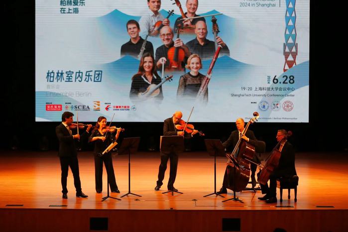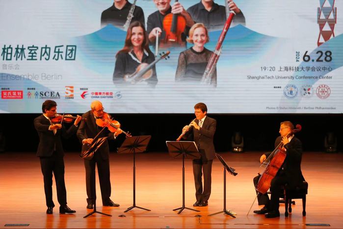 On the evening of June 28, Ensemble Berlin of the Berliner Philharmoniker visited ShanghaiTech University and provided the audience with an exclusive high-quality artistic experience. Well before the official performance began, the Conference Center was already filled with students and faculty gathered for this spectacular auditory feast.