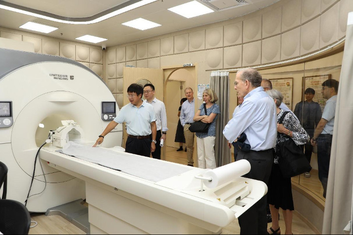 Prior to the meeting, the delegation, accompanied by Jiang Ge, visited the Shanghai Institute for Advanced Immunochemical Studies (SIAIS), the iHuman Institute, and the School of Biomedical Engineering (BME). They were also briefed on the construction progress of the Shanghai Clinical Trial and Research Center.