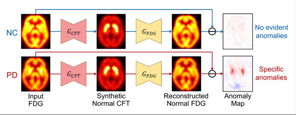 The MetaAD framework can highlight metabolic abnormalities of PDs in FDG images, with red and blue regions representing abnormal areas of higher and lower metabolism, respectively.