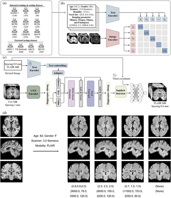 In this research, Wang Yulin, a postdoctoral researcher in Professor Shen Dinggang’s group, proposed a pioneering general multi-modal MRI synthesis framework guided by metadata for multi-modal magnetic resonance imaging synthesis. This framework is capable of generating high-quality MRI sequences based on specified scanning parameters and demonstrates excellent cross-center generalization capabilities. It offers a new solution for quickly and cost-effectively obtaining customized multi-modal MRI images, expected to significantly enhance the efficiency and precision of clinical diagnosis and research.