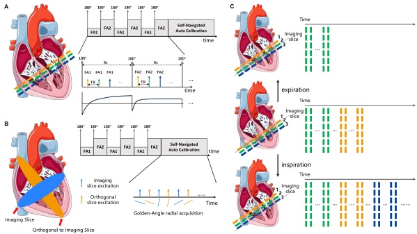 Master’s student Huang Hongzhang in Prof. Qi Haikun’s research group proposed a retrospective through-plane motion correction scheme to address respiratory motion problem during MRI scanning, enabling T1 quantification during free breathing. The study introduced a multi-slice joint scanning and self-navigated self-calibration module, allowing for respiratory signal extraction and through-plane motion correction without external detection devices, offering new insights into cardiac MRI motion correction.