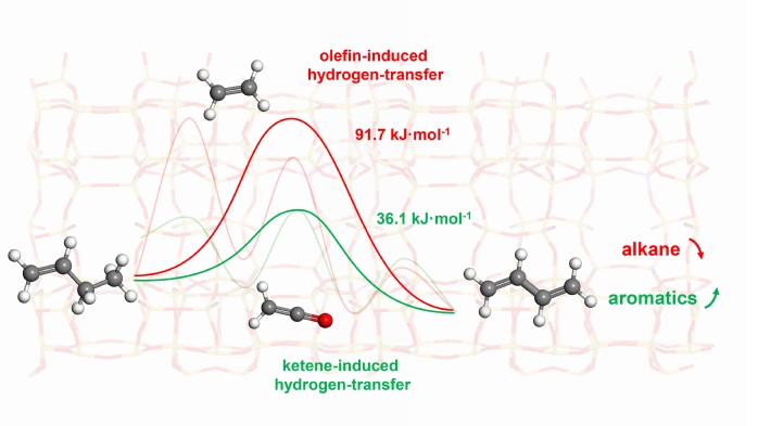 Aromatic hydrocarbons are essential raw materials in chemical production, finding widespread application in the synthesis of plastics, dyes, fragrances, pharmaceuticals, and synthetic rubber. Technologies that convert non-petroleum carbon sources, such as syngas and methanol, into aromatics within molecular sieves have garnered significant interest for their potential to reduce reliance on petroleum. Past studies have established that during aromatic synthesis, olefin-induced hydrogen-transfer (OHT) reactions are inevitable, producing substantial alkane byproducts and thereby limiting aromatic selectivity. Recent research has shown that introducing carbon monoxide (CO) into the reaction suppresses alkane selectivity while markedly enhancing aromatic selectivity. However, a microscopic understanding of this phenomenon has remained elusive.