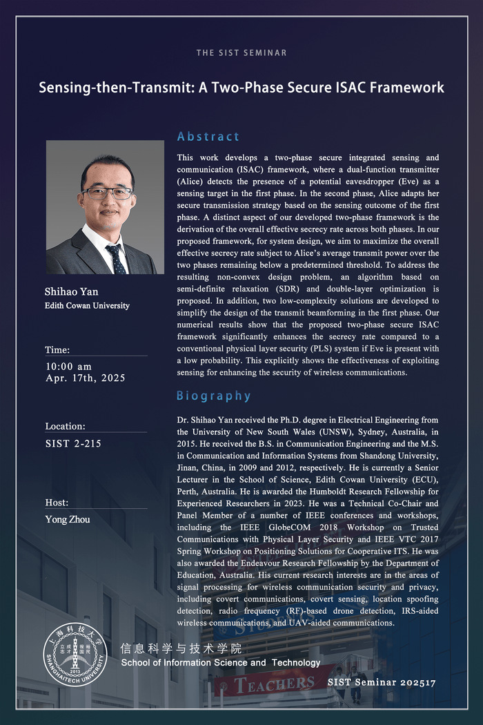 [SIST Seminar] Sensing-then-Transmit: A Two-Phase Secure ISAC Framework