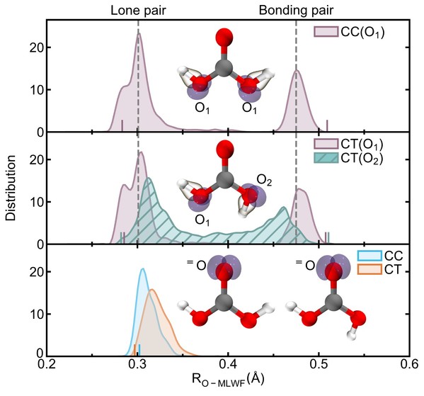 The aqueous environment induces significant electronic asymmetry in the CTonformer’s hydroxyl groups. Compared to CC, the lone pair electrons in CT are 0.12 Å farther from the nucleus, while bonding electron pairs are 0.12 Å closer. This enhanced hydrophilicity reduces hydroxyl stability, increasing dissociation probability.