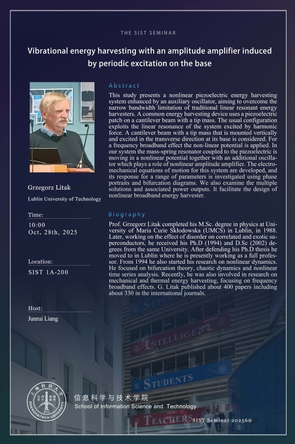 [SIST Seminar] Vibrational energy harvesting with an amplitude amplifier induced by periodic excitation on the base