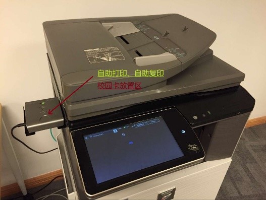 A. 在【自助文印一体机】刷卡区放上校园卡进行刷卡,如下图区域: