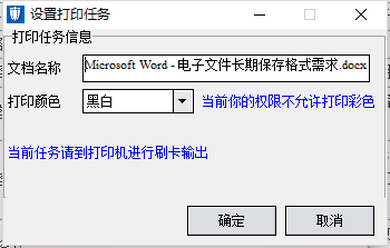 B、打印完成后,弹出如下图所示窗体,选择需要【打印颜色】,点击【确定】。