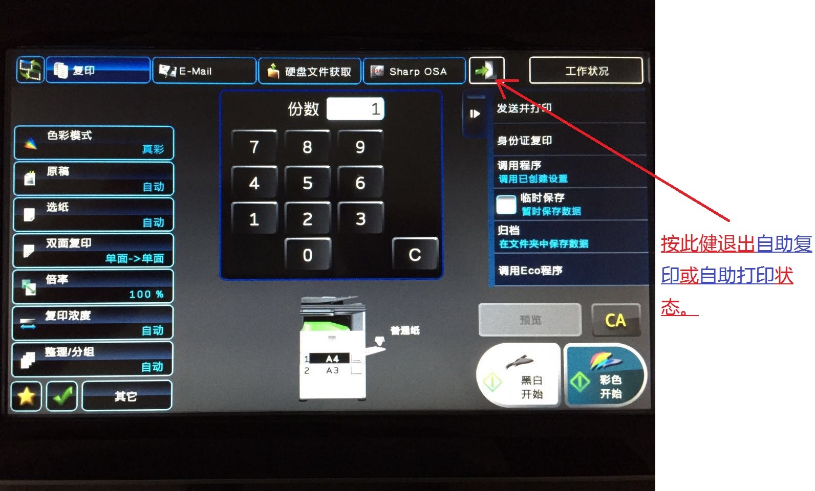4. 提醒:请务必要退出复印模式,以免卡中余额被盗刷。